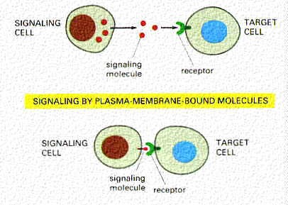 The lower cartoon shows interactions between two cells, one with a receptor for a protein