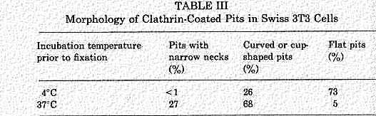 Some coated vesicles may be configured with a deep invagination, called a "neck". These were discovered by Willingham and Pastan and can be seen in serial sections as a thin region connection between the outside of the membrane and the vesicle. The vesicle contains labeled ligand attached to receptor. Formation of these necks is definitely temperature dependent as can be seen in the following table.